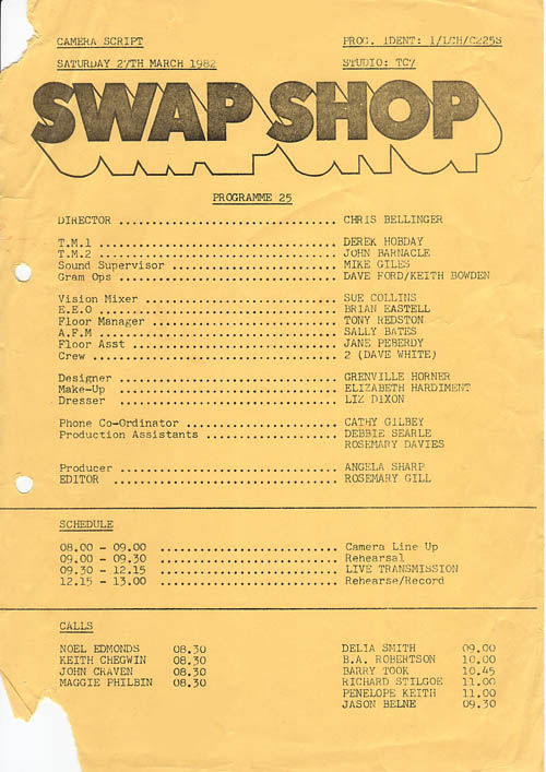We've scanned the script from the last ever Swap Shop broadcast on 27th March 1982 so you can have a look for yourself at what went on both in front and behind the camera.